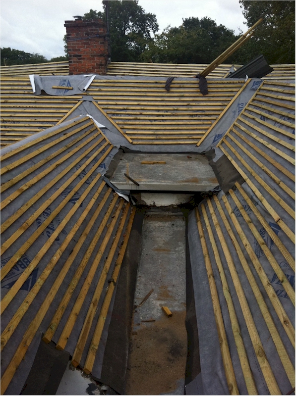 We can undertake all forms of domestic work, from simple tile repairs to new and self build jobs. We install and repair lead work, flashings, guttering, facias and sofits on all properties from period cottages to new houses, flats, garages, sheds and workshops. Whether it's a 2 or 4 hip garage, gable to gable, dutch barn, tradional mono pitch or a complex period cottage with irregular roofs and valleys, MAB are experienced and able to help.